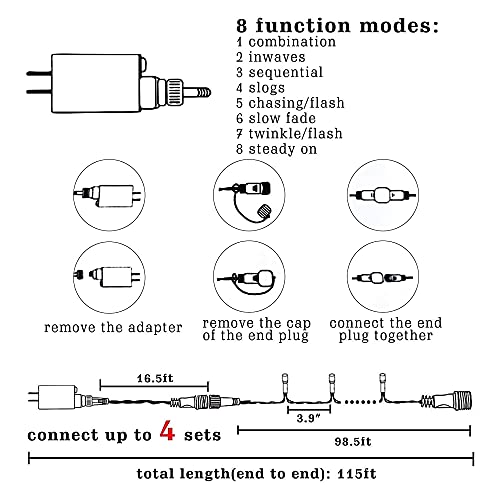 Click for More Images Halloween Lights: Halloween 300 LED string lights, use UL-certified 29V low-voltage plugs to ensure the safe use of the product. The length is 100FT.8 Modes: Halloween 300 LED string lights with 8 light modes: combination,...