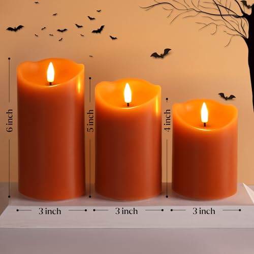 Click for More Images What's Box - packge includes 3 pieces burnt orange led pillar candles 3 inch diameter by height from 4 inch to 6 inch, one remote control and user manual.Realistic Flameless Candles - coated with paraffin wax, these candles...