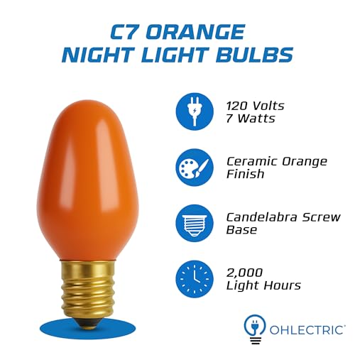Click for More Images Bulb Shape: C7Average Rated Hours: 2000Bulb Finish: OrangeBase: Candelabra ScrewDimmable: No More Information...