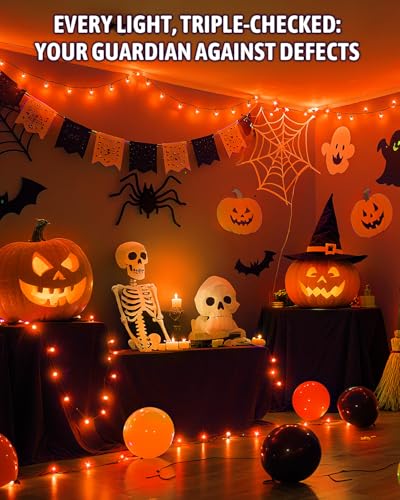 Click for More Images ?Bright & Soft Halloween Lights?66ft long Halloween led lights are bright and not dazzling. In addition, the orange Halloween lights with plug greatly improve the stability of bulb brightness. Perfect for adding Halloween...