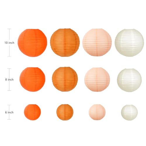 Click for More Images PACKAGE:Orange peach cream paper lantern sets come with 12 pcs paper lanterns to hang in your party, they size include 6inch 4 pcs, 8 inch 4 pcs and 10 inch 4 pcs. These different sizes paper lanterns will give you a of...