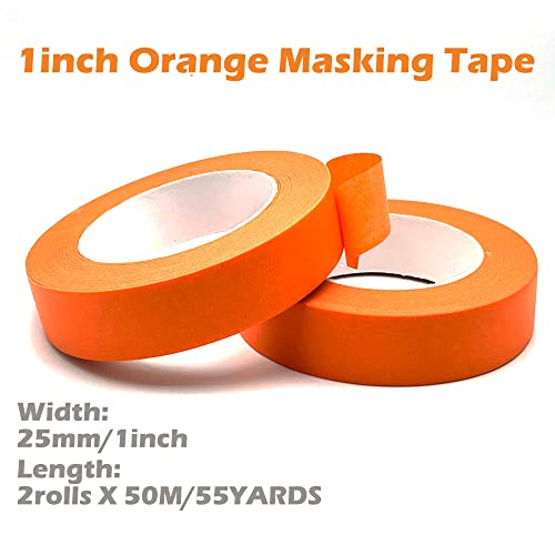 Click for More Images ONE PACK, 2 ROLLS: Our orange masking tape set comes with 2 ROLLS. Each roll with width 1inch(25mm) length 55yards(50m), total 2 ROLLS X 55 yards(180 ft)=360ft long. Long enough for your different needs. Great for crafts,...