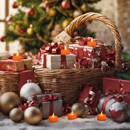 Click for More Images Automatic Timer: These orange flameless candles have a built-in timer that automatically cycles on for 6 hours and off for 18 hours.LED Candles: These 24 flameless candles by LANKER feature flickering warm yellow LED lights...