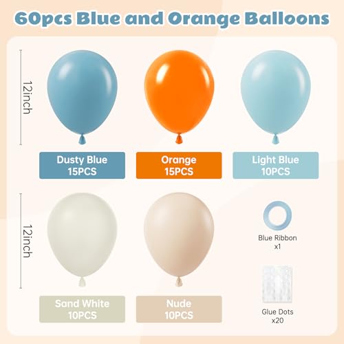 Click for More Images Package Include: The blue and orange balloons include 12inch dusty blue balloonsx15, 12inch orange balloonsx15, 12inch light blue balloonsx10, 12inch sand white balloonsx10, 12inch nude balloonsx10, glue dotx20, ribbonGreat...