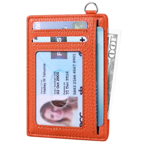 Buffway Slim Minimalist Front Pocket RFID Blocking Leather Wallets for Men and Women – Lichee Orange