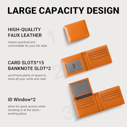 Click for More Images Durable Surface:Our faux leather wallets are high on utility,durability and have the quality materials.The surface of the faux leather is made more scratch-resistant by special treatment,which can effectively prevent small...