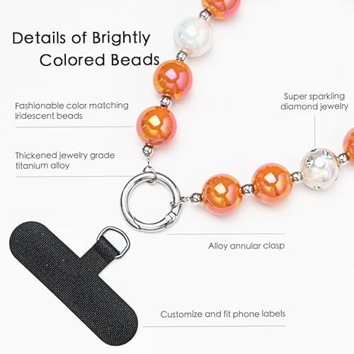 Click for More Images 1. ? Vibrant & Stylish Accessory This beaded phone wrist strap for women features 16mm rainbow-colored beads and adorable charms, creating a fashionable orange phone charm bracelet that complements any outfit. Perfect for...