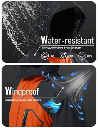 MAGCOMSEN Snowboard Jacket for Men with Hood Winter Coat Ski Jacket Windbreaker Water-Resistant Rain Coats Hiking Jackets Gray Orange L
