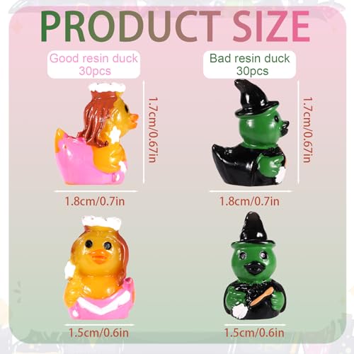 60pcs Small Resin Ducks, 2 Styles Tiny Good & Bad Mini Resin Animals Miniature Plastic Figurines for Halloween DIY Aquarium Garden Office Decoration