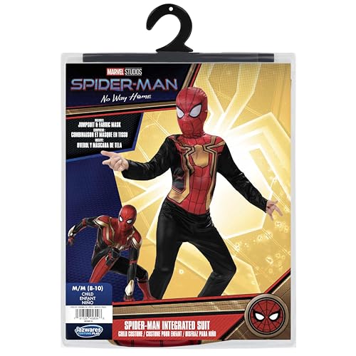 Boy’s Spider-Man Integrated Suit Value Costume, Black and Red Spidey Outfit for Halloween, Super Hero Dressup Large