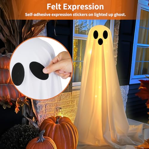 Buttools Halloween Decorations Outdoor -DIY 2PCS Large Lighted White Cloth Ghosts-Cute Ghosts with 30 LED String Lights-Light Up Holiday Party Home Porch Yard Decorations
