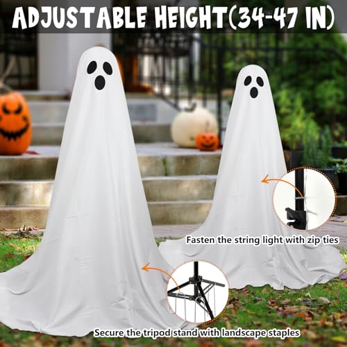 • ?Quick-Setup Halloween Ghost Décor: These cute ghosts feature adjustable height from 34″ to 47″ and are super easy to assemble. For outdoor use, easily secure them with included landscape stakes!