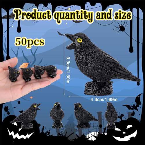 GGSTDDUP 50 Pcs Miniature Crows Figurines, Mini Resin Crows Figures, Mysterious Black Raven Bird Figurines Decor, Mini Animals Figures to Hide, Novelty Halloween Scene Party Favors Gift Decoration