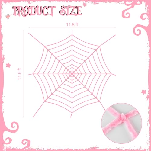 Giant Pink Spider Web: The huge pink spider web measures 12 ft in diameter which is highly durable and last longer, you can easy to hang it anywhere you like. This huge pink spider web is hand-knotted by nine loops of thick polyester rope, strong enough to withstand rain and snow weather.
