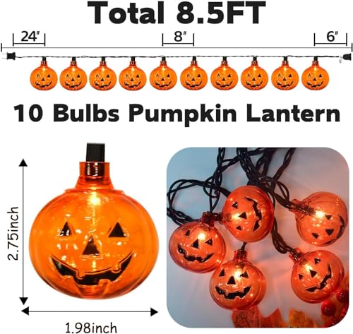 Halloween Decorations Pumpkin Lights, 8.5 Feet Clear Pumpkin String Lights. 10 Pack Orange Pumpkin Lantern Lights for Halloween Indoor Outdoor Party Patio Yard Home Decor