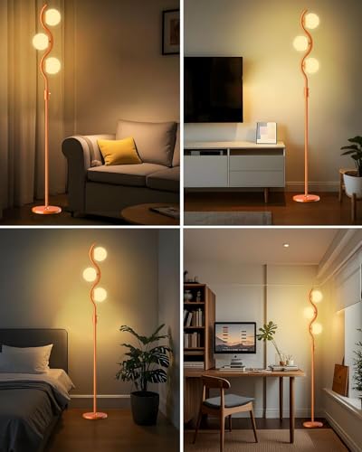 Lightdot 3-Globe Dimmable Floor Lamp Orange Mid Century Modern Standing Lamp with 3PCS 3000K G9 Bulbs Stepless Brightness Adjustable Stable Base for Living Room, Bedroom, Office