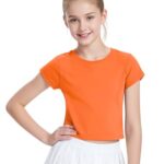 Auranso Girls Crop Tops Summer Short Sleeve Round Neck T Shirts Basic Tee f…