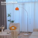Orange Arc Floor Lamp, Mid Century Modern Arched Floor Lamp with Orange Gla…