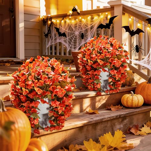 ? Fall Flowers Artificial for Decoration: Beautiful artificial outdoor hanging flowers plants are suitable for home, garden, porch, patio, window box, urn, planter, pathway, entry, front door, flowerbed, indoor and outside decorations. Brings beauty to your home in the autumn.