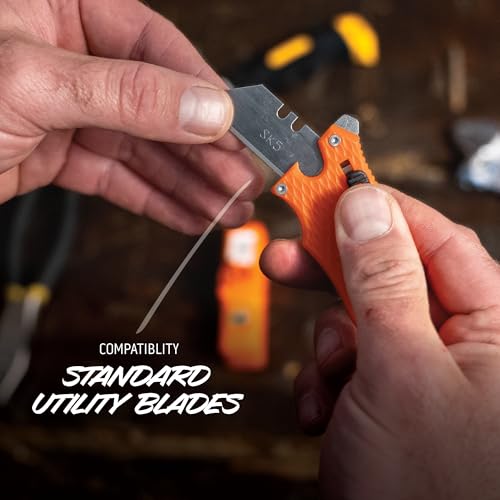 Outdoor Edge SlideWinder – Utility Knife Multitool with Standard Replaceable Razor Blade, Screwdrivers, Prybar, Bottle Opener and Pocket Clip with Locking Auto-Retracting Blade (Orange)