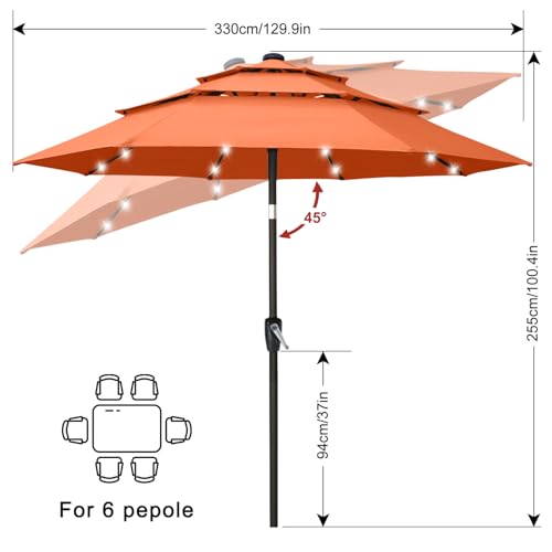 ABCCANOPY 3-Tiers 11FT Solar Patio Umbrella, Outdoor Umbrella with 32 LED Lights for for Deck, Pool, Garden, Backyard (Orange)