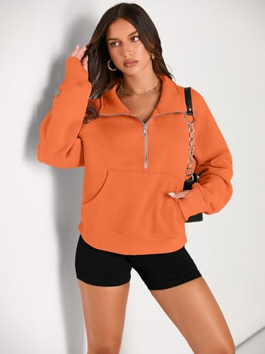 AUTOMET Womens Sweatshirts Half Zip Cropped Pullover Fleece Quarter Zipper Sweater Hoodies 2025 Fall Fashion Outfits Clothes Orange Small