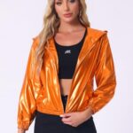 Allegra K Women’s Holographic Party Shimmering Shiny Lightweight Zipp…