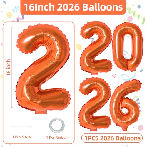 Package Includes : 16inch Orange number 2026 balloons, 1 straw, 1 ribbon.