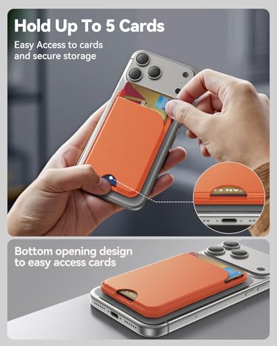 TWZKG for MagSafe Wallet, 5 Card Holder with Stand, Magnetic Phone Wallet Stand for iPhone 17/16/15/14/13/12 Pro Max Air Plus Series, RFID Blocking Vegan Leather,Orange